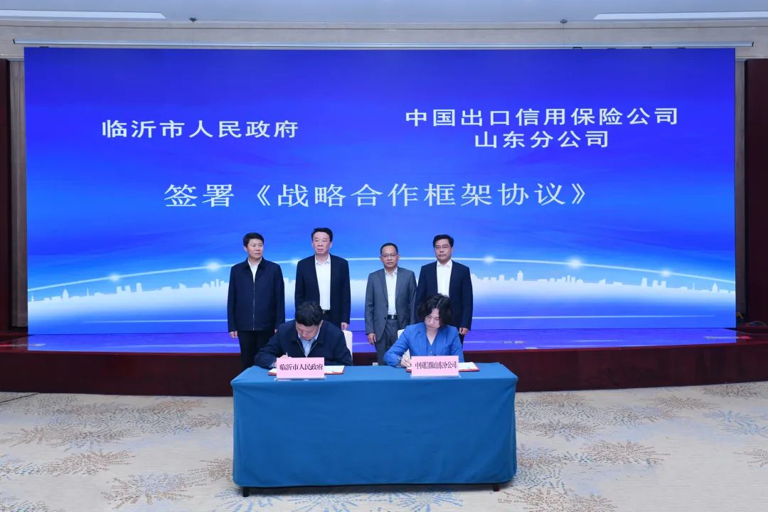 仪式上,临沂市人民政府与中国信保分公司签署《战略合作框架协议》,临商银行与中国信保临沂营业部交换《全面合作协议》,与会领导为中国信保临沂营业部揭牌。